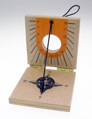 Diese kleine, etwas ungewöhnliche Sonnenuhr lässt sich präzise auf die Sonne ausrichten. Zusammengeklappt findet sie in jeder Abenteurer-Hosentasche Platz. Nach Süden ausgerichtet zeigt der Schatten der Schnur die genaue Zeit an - natürlich nur, wenn die Sonne scheint! Mit Gebrauchsanleitung in einer Schachtel. Zusammengeklappt: 6 x 6 cm, ausgeklappt: 7 cm. Stammt aus dem Entwicklungsprojekt einer Behinderten-Werkstätte.