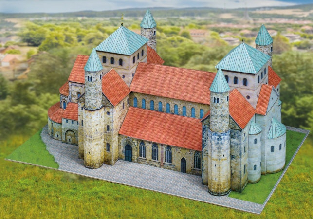 Ein besonders gelungenes Stück vorromanischer Architektur ist die Michaliskirche in Hildesheim. Das Modell ist nicht so schwierig zu bauen und zeigt durch das abnehmbare Dach das Deckengemälde im Inneren.